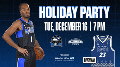 The Osceola Magic conclude its December home schedule with a match against the Memphis Hustle on Tuesday, December 16 at 7 p.m. ET. Come join the Magic celebrate the holiday season with their annual Holiday Party! The first 1,000 fans will receive a special sweater-themed replica jersey.