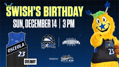 The Osceola Magic return to Osceola Heritage Park on Sunday, December 14 against the Memphis Hustle. Tipoff is set for 3 p.m. ET. Fan can come out to for a special birthday celebration for the G League's best mascot, Swish! As part of the festivities, the first 1,000 fans will receive an Orlando Magic Night replica jersey.